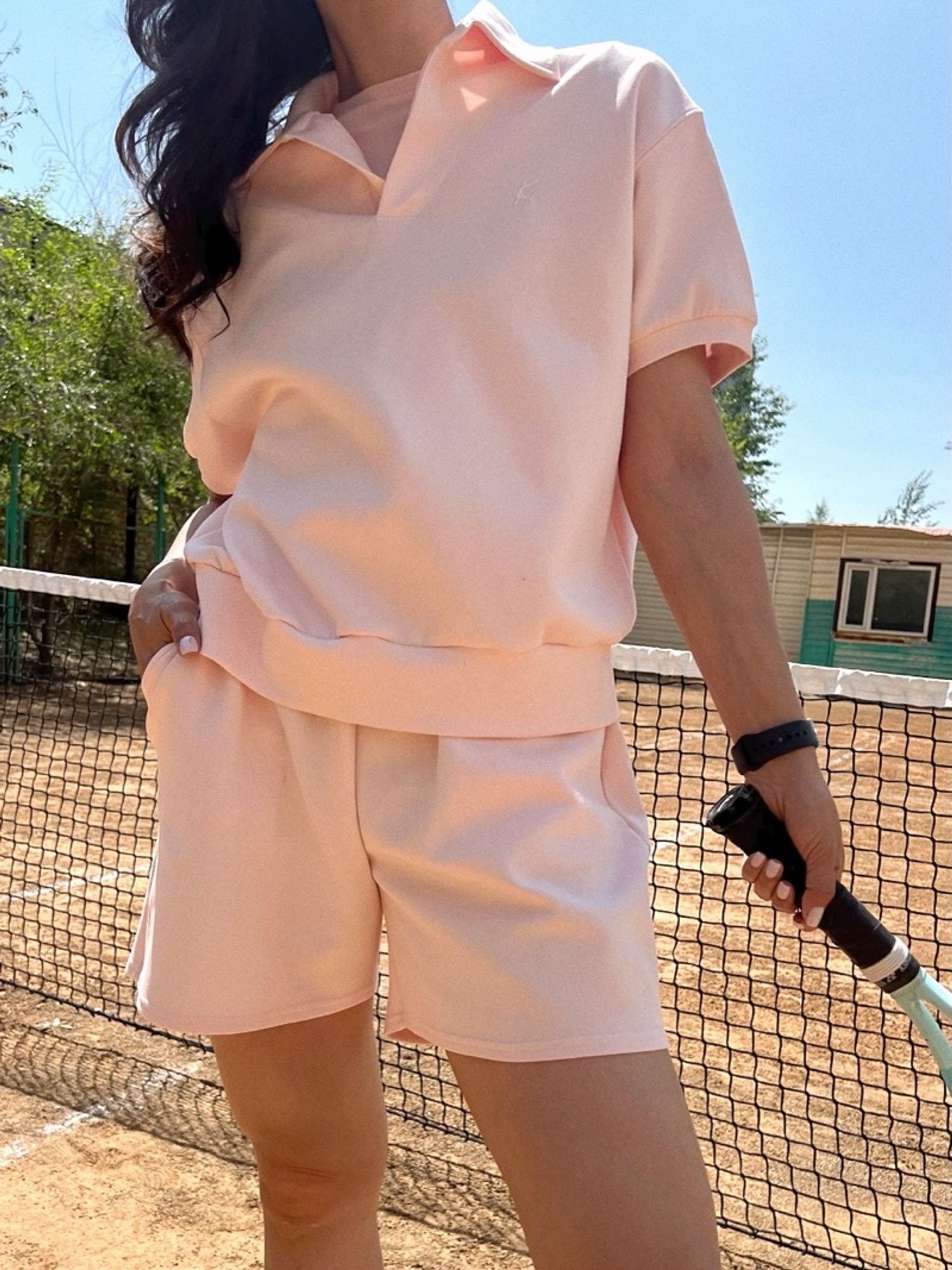 Classic midi sleeve polo set - oversized 85%-ийн цэвэр даавуу, зуны улиралд таарсан зөөлөн, хөнгөн материалтай. Модель 176:52 M size өмссөн