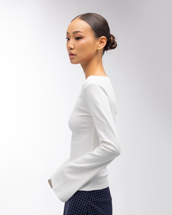 Y2K off shoulder top Ханцуй хэсэг нь өргөн, мөрөө өөртөө тааруулаад загварлаад өмсөх боломжтой. Модель: 176:47, s size өмссөн