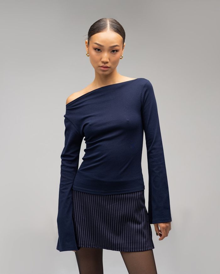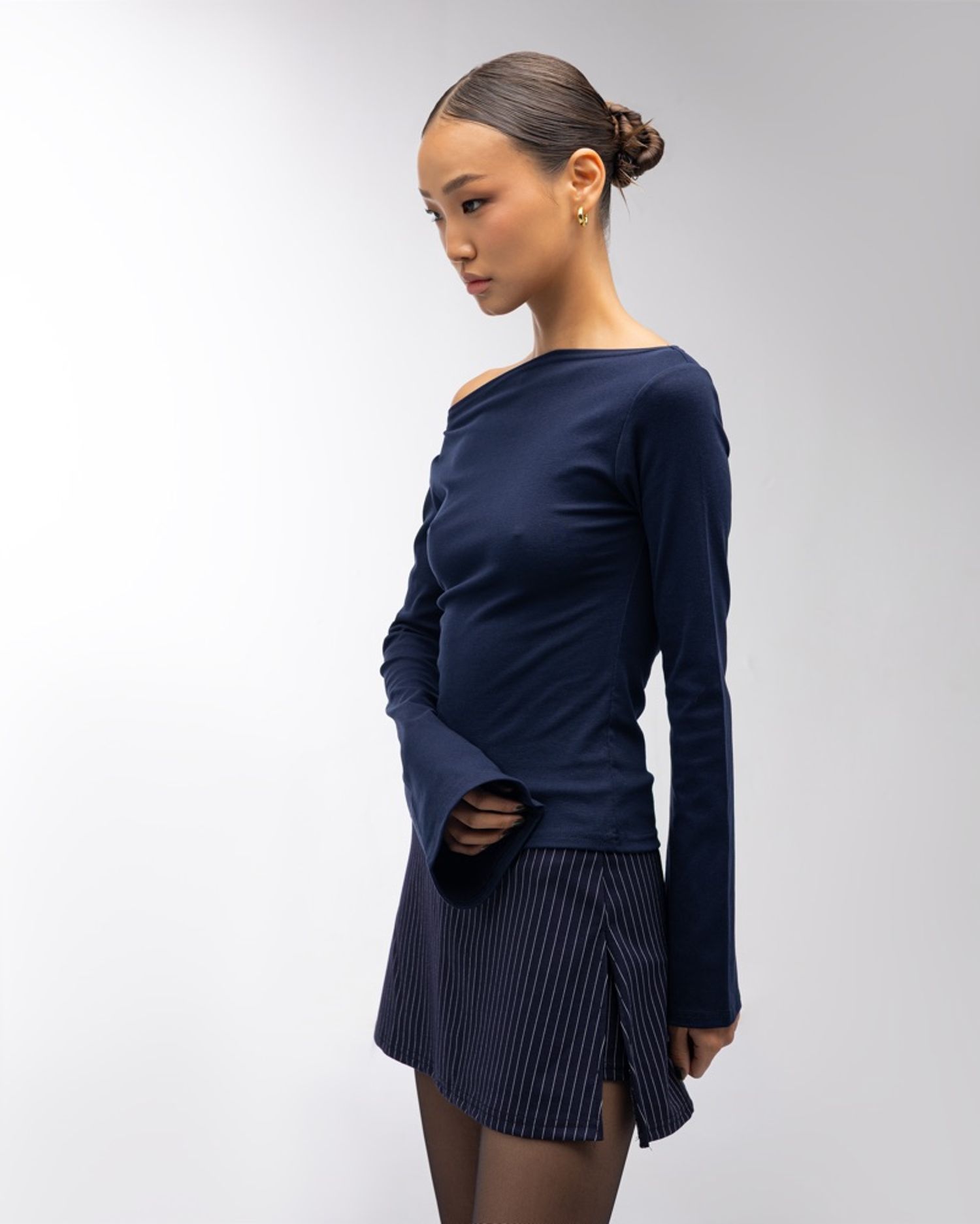 Y2K off shoulder top Ханцуй хэсэг нь өргөн, мөрөө өөртөө тааруулаад загварлаад өмсөх боломжтой. Модель: 176:47, S size өмссөн